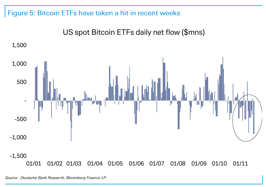 这种流动性缺失的状况自10月以来并未得到根本改善。更糟糕的是,此前通过现货比特币ETF流入市场的数十亿美元资金正在逆转。