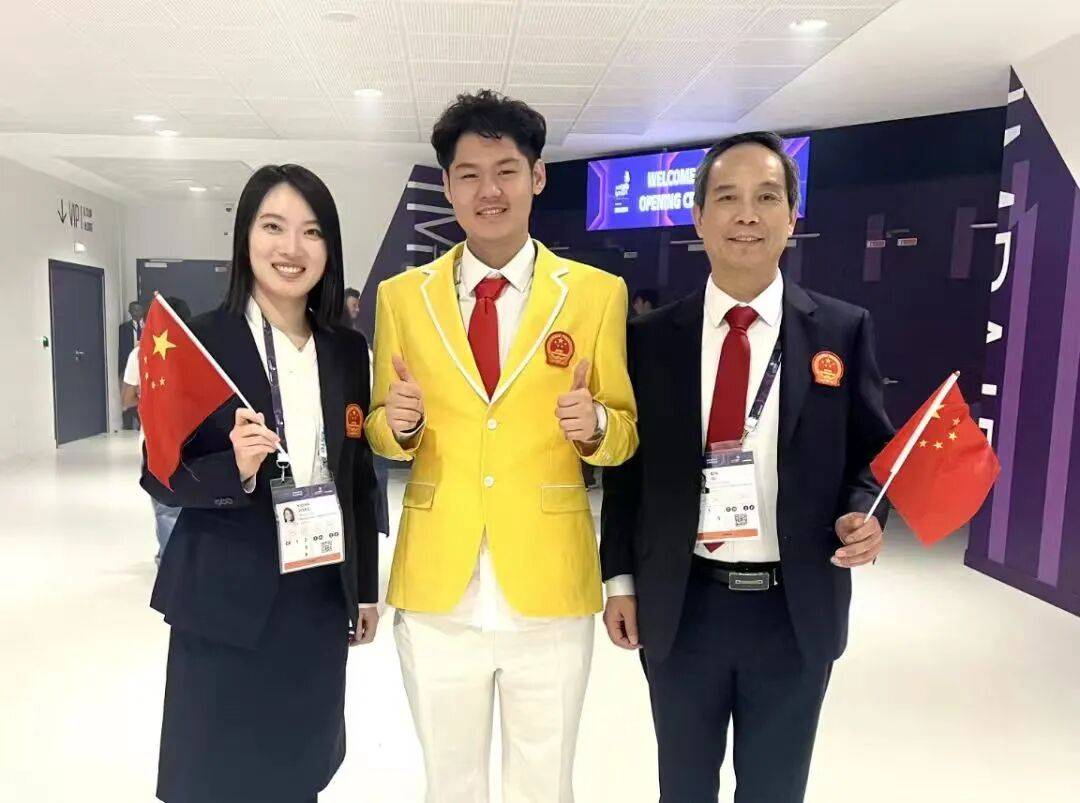 2024年在法国里昂第47届世界技能大赛上,天津“00后”小将李宏宇(中)摘得信息网络布线项目金牌,打破国外选手在这一项目上长达17年的垄断